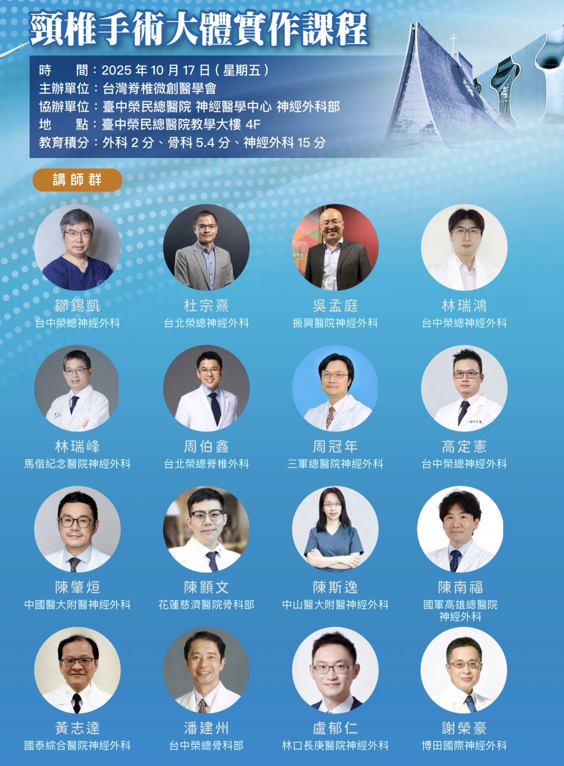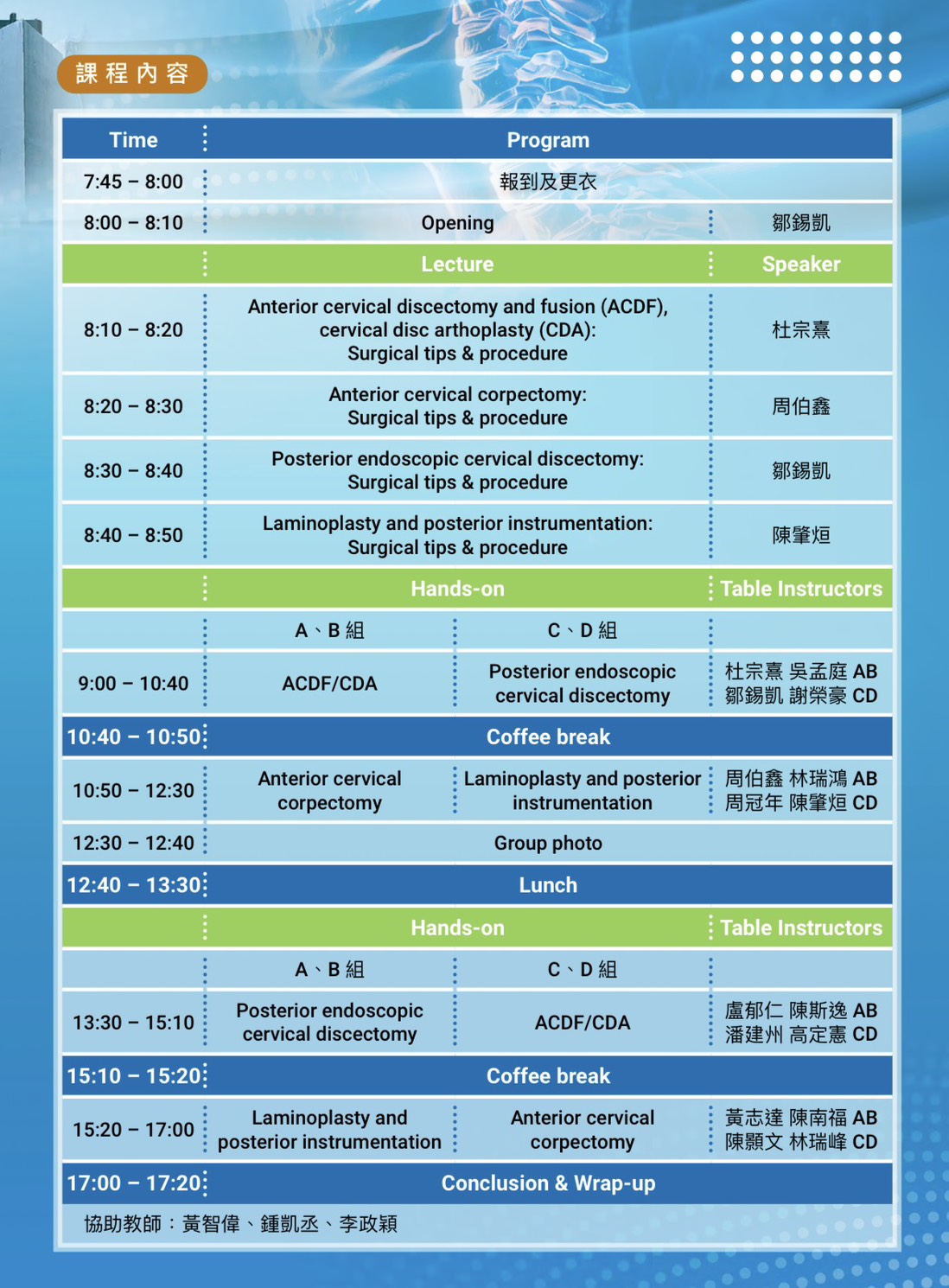 5. 錄取學員名單及相關配合事項將於114年8月31日或額滿時公告於台灣脊椎微創醫學會網站。